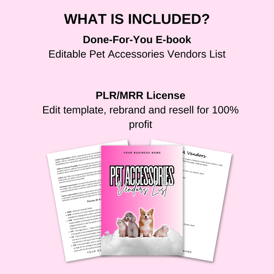 PLR Editable Pet Accessories Vendors List
